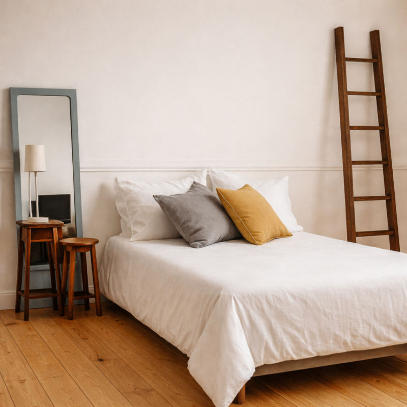 Um quarto versátil com duas camas individuais, com acesso direto para pátio interior. Luminoso e confortável.