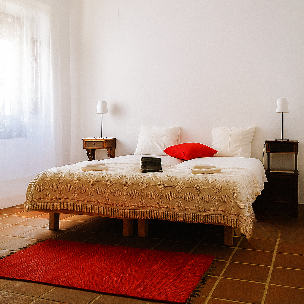 Cada quarto foi pensado para proporcionar máximo conforto e privacidade, mantendo o charme autêntico alentejano. Os hóspedes podem desfrutar da proximidade às tradições locais enquanto têm acesso a todas as comodidades modernas.